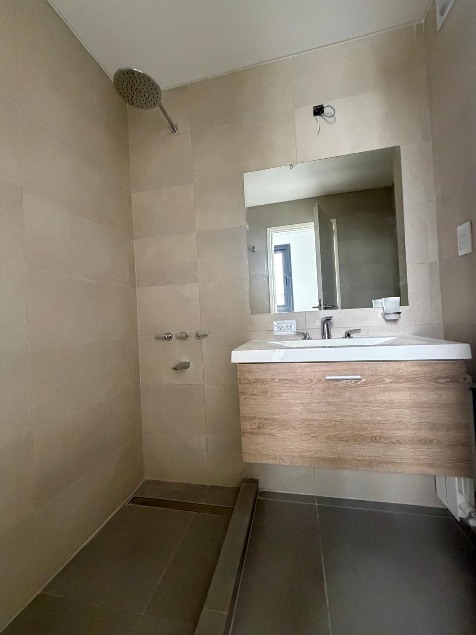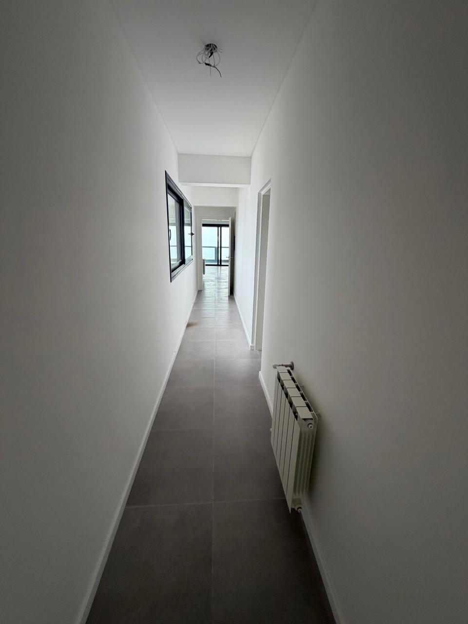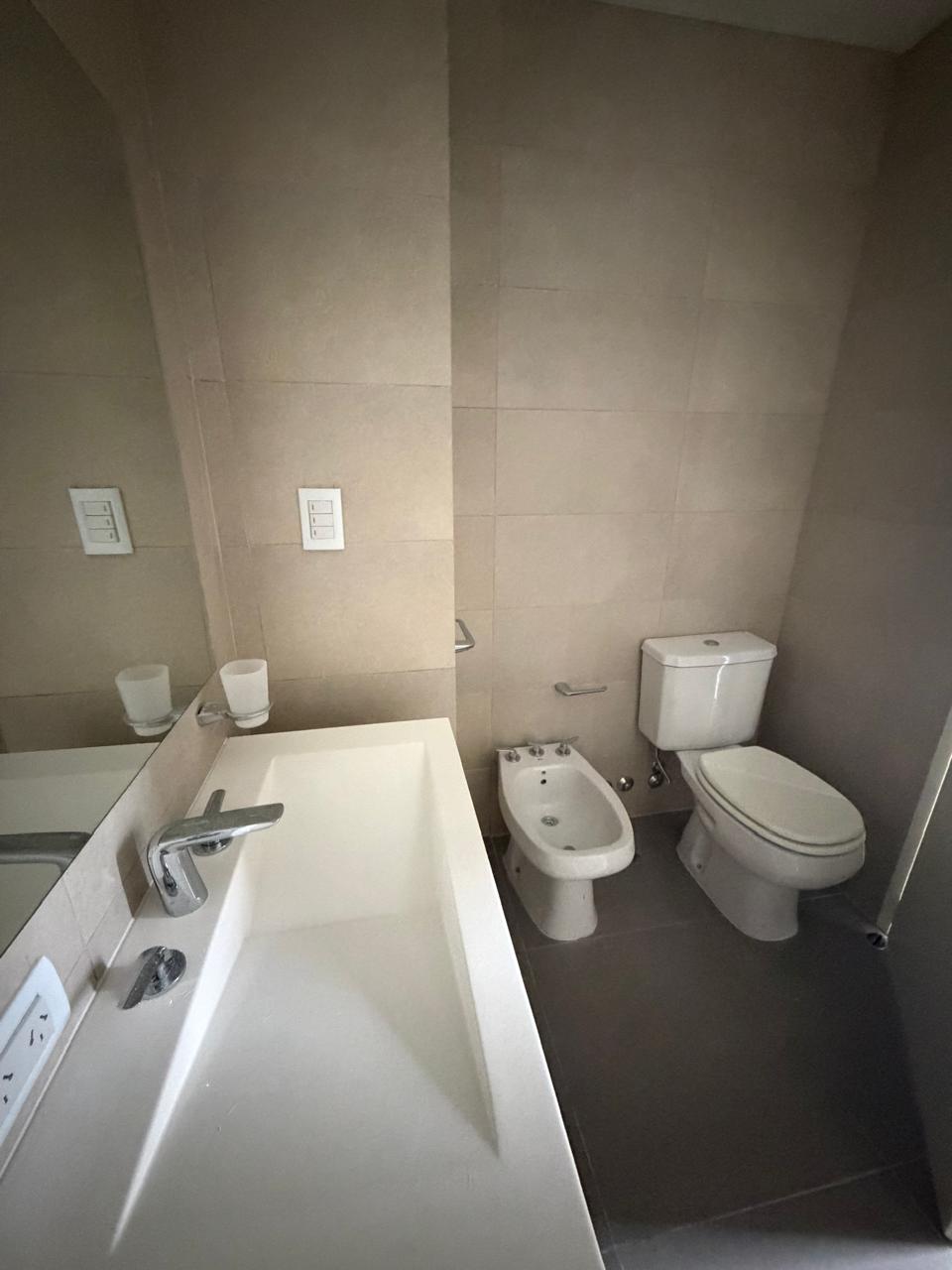 Los baños presentan terminaciones en tonos claros y equipamiento completo, incluyendo ducha, lavamanos, inodoro y bidet. El departamento dispone de baulera, lo que facilita el almacenamiento adicional.Para mayor confort y eficiencia, el departamento posee calefacción por radiadores y aberturas de doble vidrio hermético (DVH).