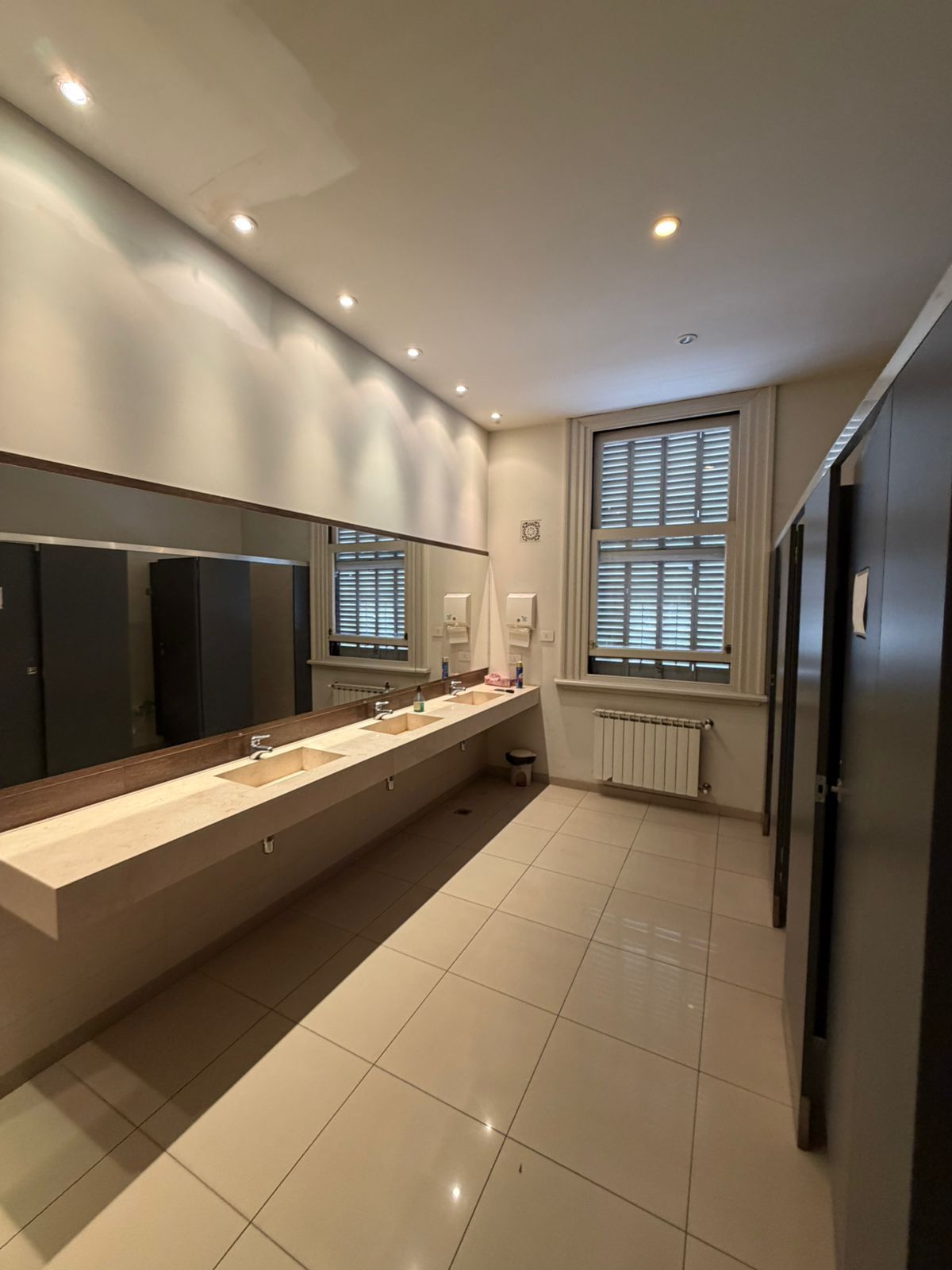 A continuación se encuentra una amplia cocina y dos baños completos. Desde la recepción se distribuyen 10 espaciosas oficinas.