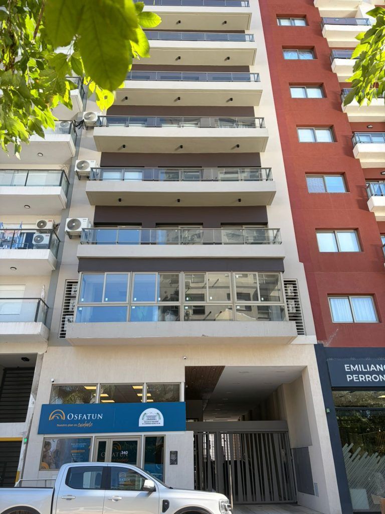 Departamento de dos dormitorios con balcón. Cocina y living comedor integrado. Un baño completo. Con cochera. Edificio cuenta con patio y gran piscina. Vista a la piscina. 67,5mts2.